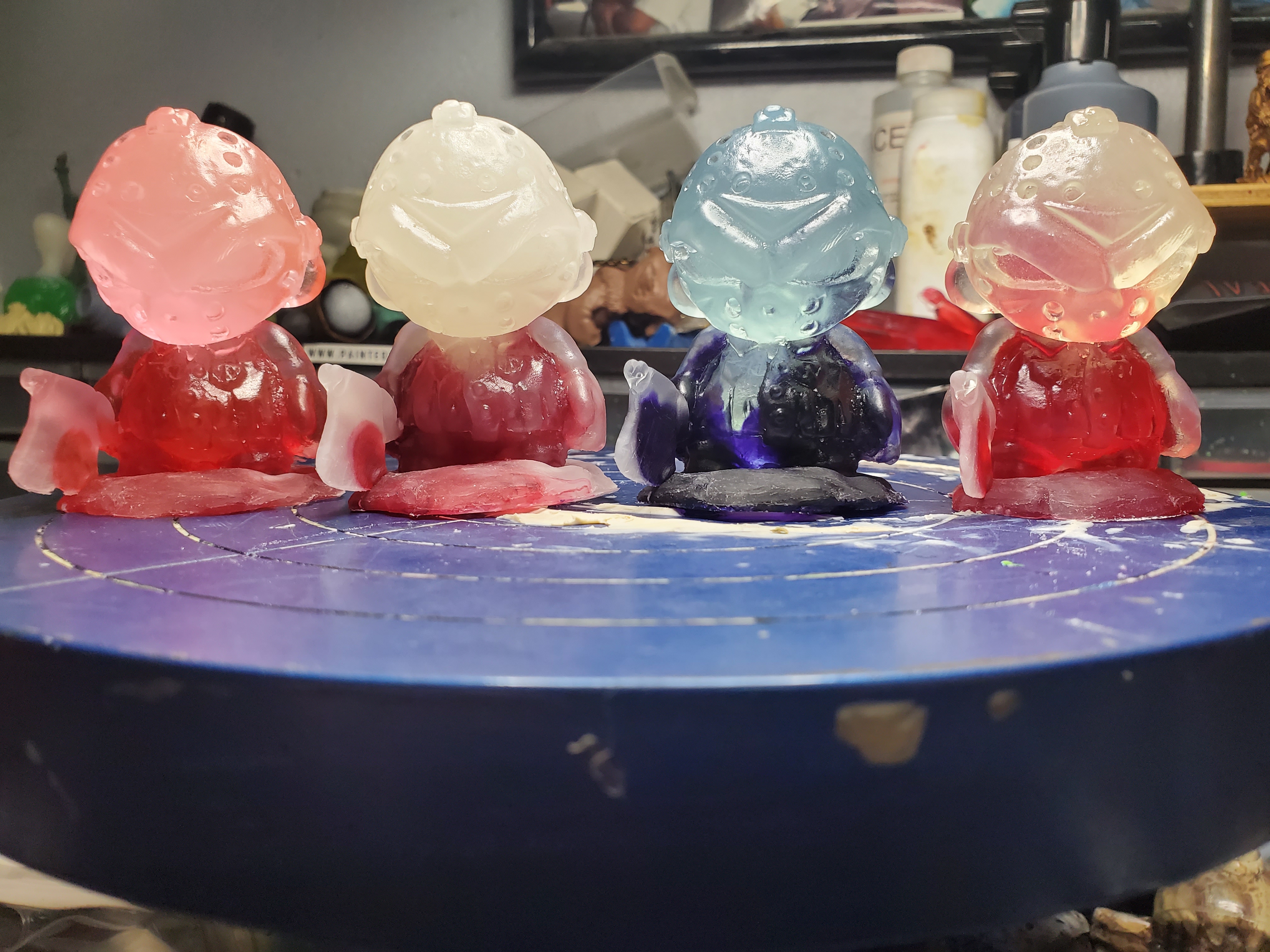 This Boozin Buddies first is a dcon exclusive for the entire show of boozin Buddie$ only the people viewing will have access to these figures. Yes that's right to show the love to all you who fuck with us but can't make it to the show here is your chance to get a random Lil J Voorhees figure sculpted by Playfulgorilla and thw customized by me each one of these come with a glow in the dark and a corresponding color. The 4 options are neon green gid and red blood drip the second is a blue gid with a purple blood drip the third is a white/red transitional gid with a red blood drip and the last is a pink/purple transitional gid with red blood drip you choose the color way you want and a random one will be sent out in that color...All remaining figures will be sold at dcon on Saturday Sunday